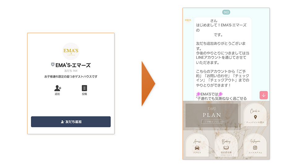 申し込み完了メールの本文に、EMA'Sの公式LINEアカウントをご案内しております。